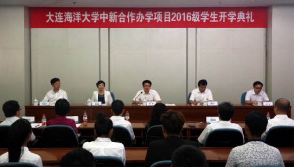 姚杰发表了热情洋溢的讲话。他首先代表公司对首届中新合作办学新生的到来表示热烈的欢迎。他向全体新生提出殷切期望:一要明确目标,勤学善思,变被动学习为主动学习,培养创新能力,练就过硬本领;二要充分利用合作办学优质的教育资源和教育机会,克服语言学习障碍,为将来出国深造打牢基础;三要博闻广识,拓宽国际视野,做一名具有国际竞争力的海大人。最后,他勉励全体新生要继承“兼容并蓄,追求卓越”的大海大精神和勤奋、严谨、求实、创新的优良学风,珍惜国际化的平台,不断超越自我,尽全力担当起未来的责任与使命。