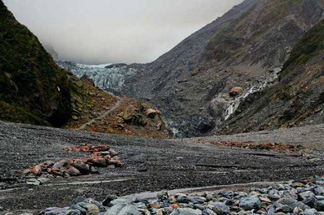 福克斯(Fox)冰川。只能远望了,冰川的河流已经几乎干涸。