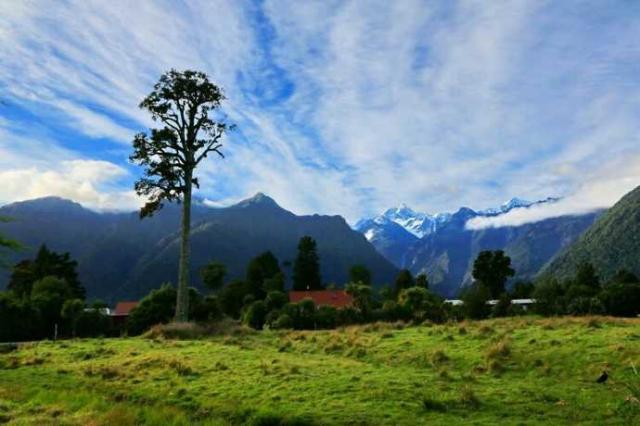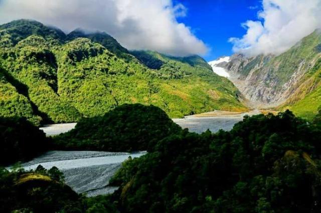 来西海岸就是奔冰川、雪山来的。弗朗兹约瑟夫(franz Josef)冰川。和世界上所有的冰川一样,弗朗兹约瑟夫冰川的雪线逐年上移,以前雪线是在我们现在看见雪水流淌的地方,现在已经上移到我们眼睛远望的山谷中。