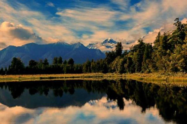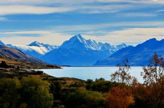 库克(Mt.Cook)雪山。库克雪山是新西兰最高山峰,海拔3764米,在南阿尔卑斯山的中心,被称为"南半球的阿尔卑斯山"