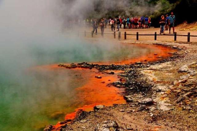 罗托鲁亚(Rotorua)是个旅游重镇,这里有很多旅游资源,有著名的温泉、冷泉、蓝湖、绿湖、红树林、新西兰第二大湖——罗托鲁亚湖、毛利皇宫等。尤其是世界十大之一的硫磺温泉——玻利尼西亚温泉,一定要去泡一泡。