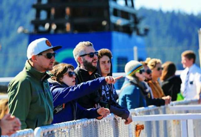 人们徜徉在这称之为‘’世界上最美丽的库克海峡渡船游‘’的游船上。