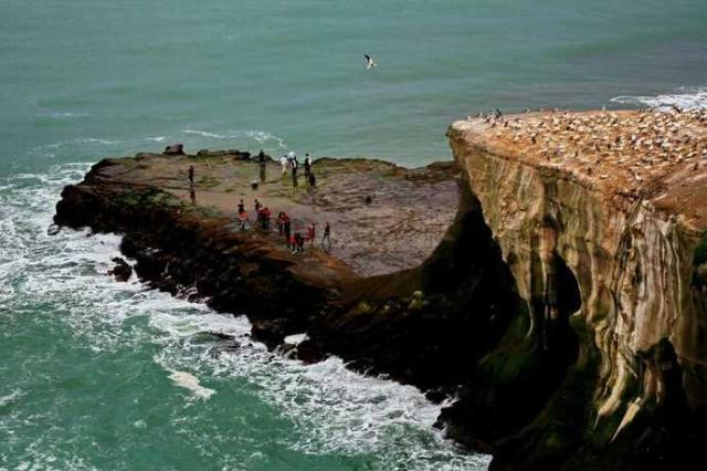 鸟岛是塘鹅(Ganet)的领地,现在秋天了,大部分塘鹅都飞去澳大利亚过冬了,岩石上显露出一个个错落有致、被塘鹅长期磨蹭凹陷的窝。
