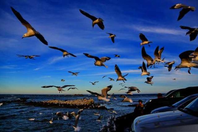 凯库拉(Kaikoura)海豹角的海鸥太怡人了,在夕阳下,我在这里近距离拍了好几张满意的海鸥群飞照片。