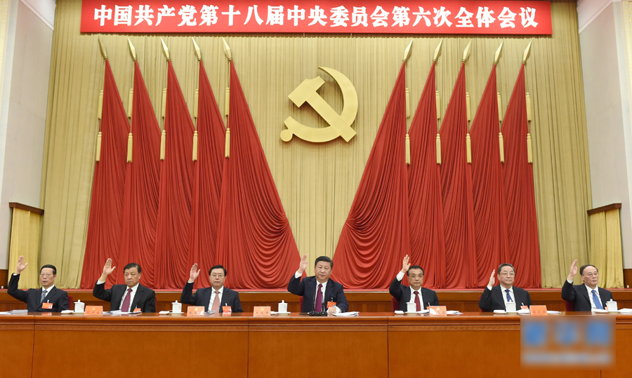 中国共产党第十八届中央委员会第六次全体会议,于2016年10月24日至27日在北京举行。这是习近平、李克强、张德江、俞正声、刘云山、王岐山、张高丽等在主席台上。