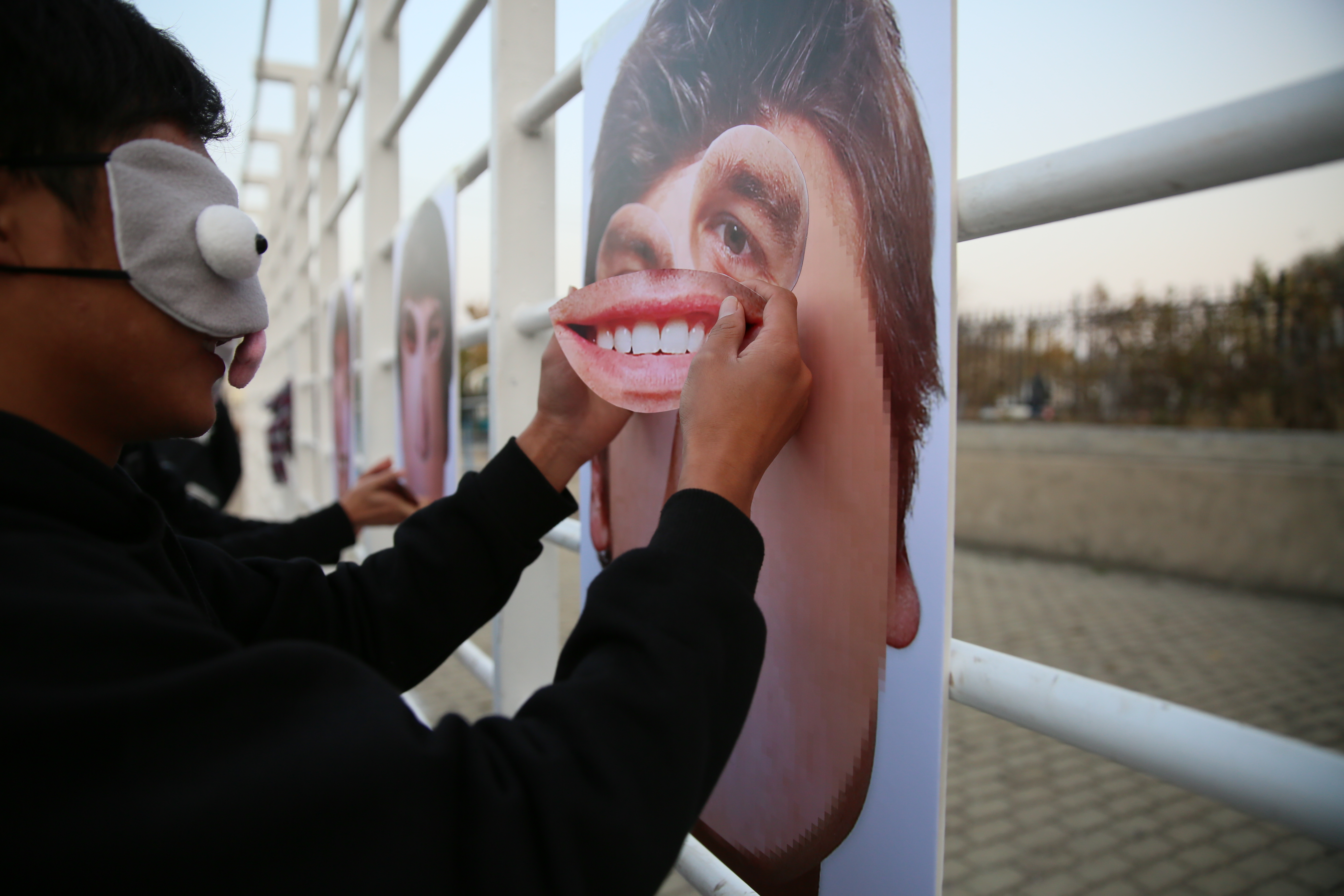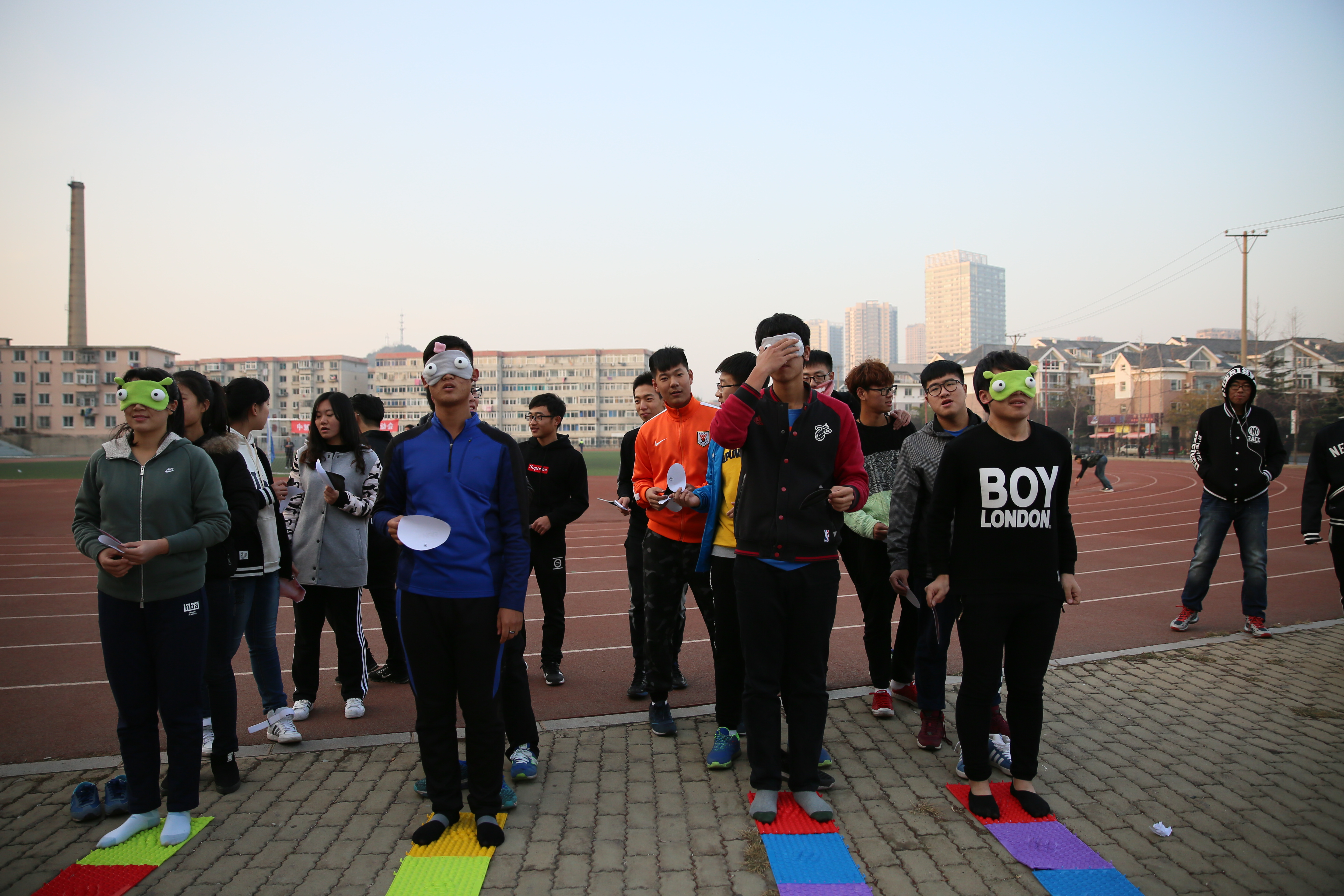 在此次运动会中,最有趣的就是贴五官比赛。同学们需要蒙眼赤脚通过指压板,在目标区域原地转10圈之后再进行张贴五官。在比赛中,比赛人员的搞笑动作和贴完后完全错位的人物造型引起了同学们的阵阵笑声。不仅同学们参加了这次比赛,员工工作办公室沈老师和乔老师也参与进来和同学们一起完成比赛。