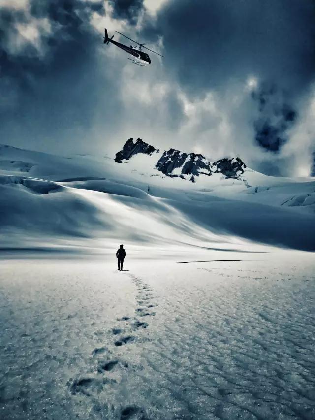 福克斯冰川,行走在伟岸的南岛之巅,天地一片纯净无瑕的白;