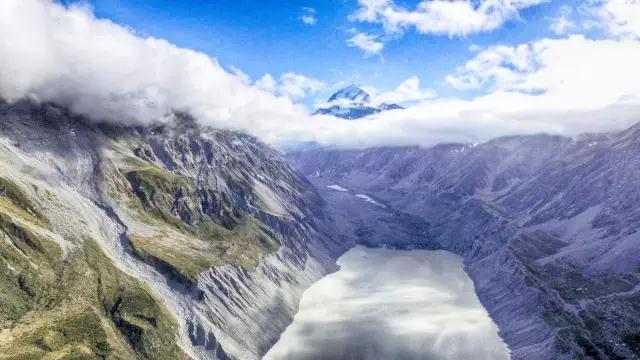 冰河世纪的新西兰,是留着痕迹的,塔斯曼冰湖,冰川流泻飘忽其上,数百万年前的冰河时代不曾走远;