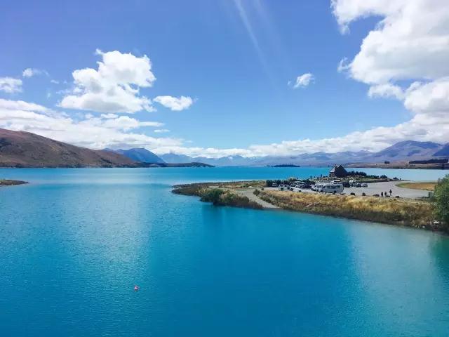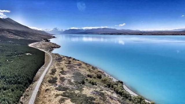 漫无边际的海岸线,水光相接,Lake Pukaki宝石般嵌在天地间,库克山在晴空下格外耀眼——好一张南岛最经典的新西兰明信片;