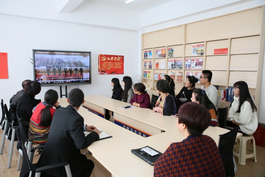 10月25日11时45分,太阳成集团tyc33455党总支组织全体师生分别在公司党员活动室和獐子岛611教室集中收看党的十九届中央政治局常委同中外记者见面会直播。