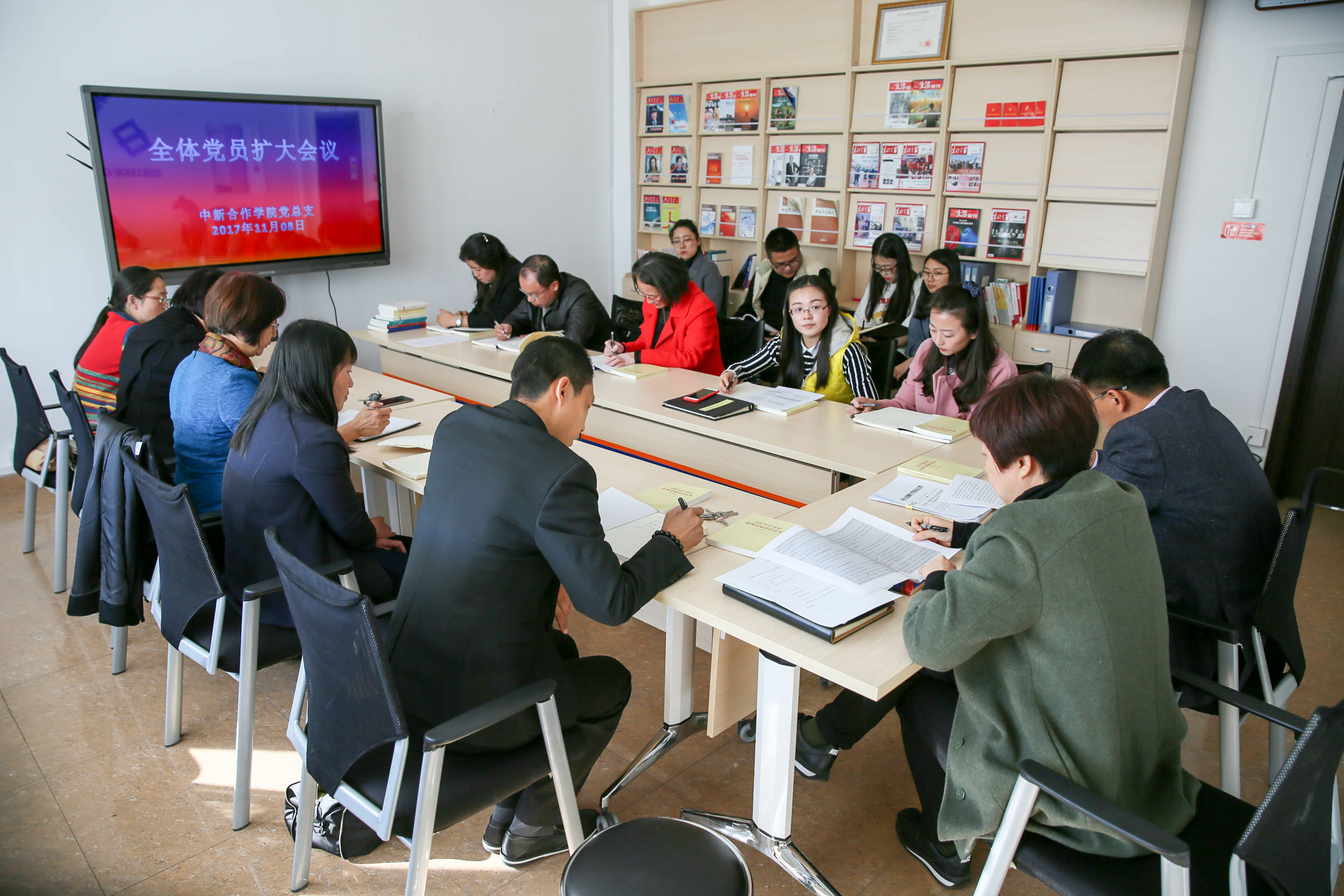 与会同志集体学习了十九大报告中关于教育部分的内容,全体党员、党外知识分子纷纷结合实际工作谈学习体会、交流心得,公司党政领导带头发言。邓艺从加强党的政治建设、强化党的阵地意识,利用国际化合作办学优势提高办学质量两个方面进行交流;经理高巍结合当前对外合作办学的新形势,就发展创新型教育,推进国际教育工作谈了认识。