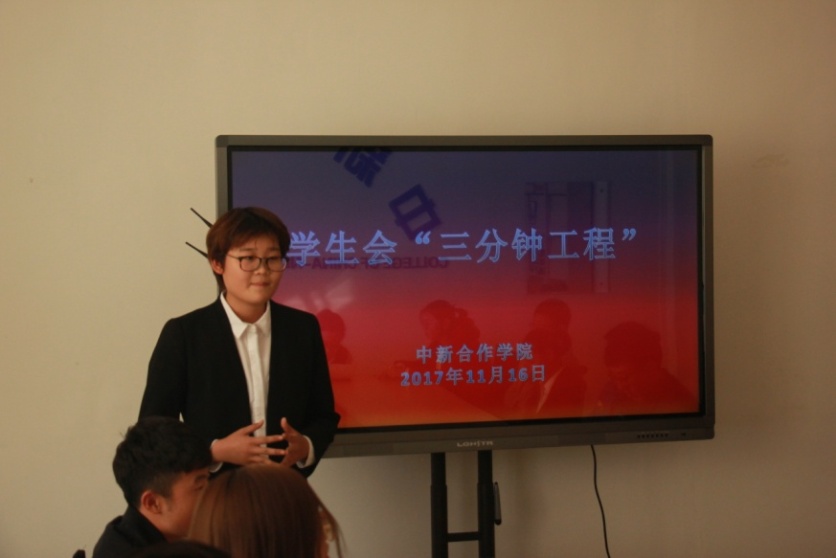 11月16日、23日,太阳成集团tyc33455员工会在公司会议室开展了“三分钟工程”活动,辅导员沈文静以及院员工会全体成员参加会议。