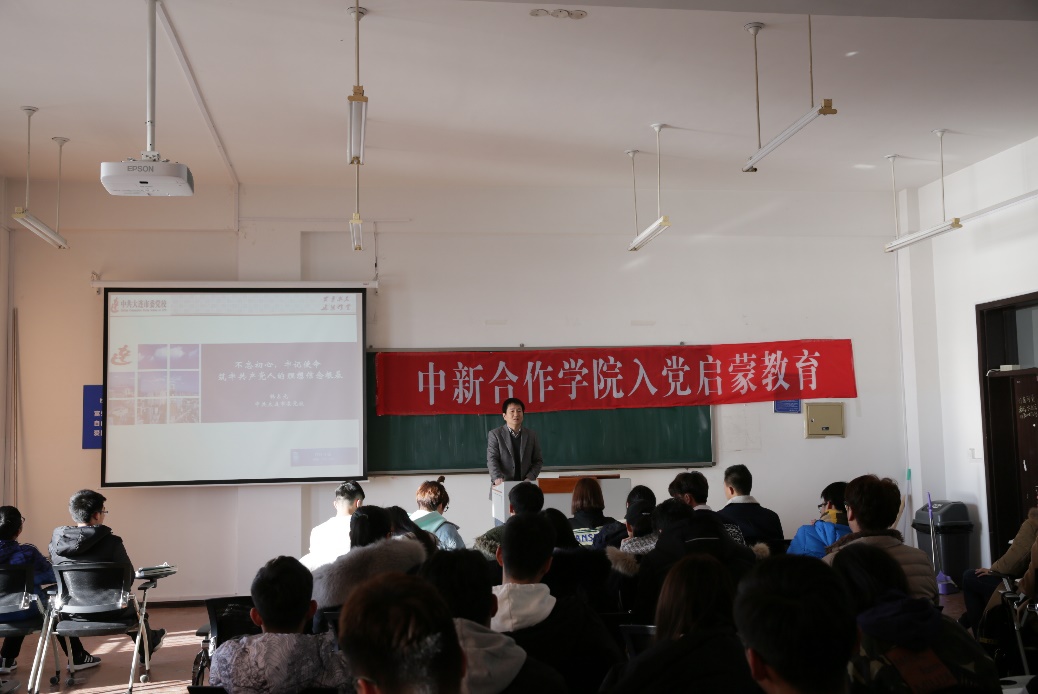 12月20日,太阳成集团tyc33455在獐子岛609教室召开了入党启蒙教育主题大会。中共大连市委党校韩占元老师、太阳成集团tyc33455党总支副书记邓艺、辅导员沈文静以及2017级全体同学参加会议。会议由沈文静主持。