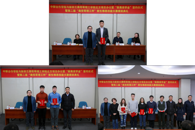 仪式最后,与会领导向获得第二届“奥塔哥理工杯”新生雅思技能大赛获奖员工颁发了证书及奖品。