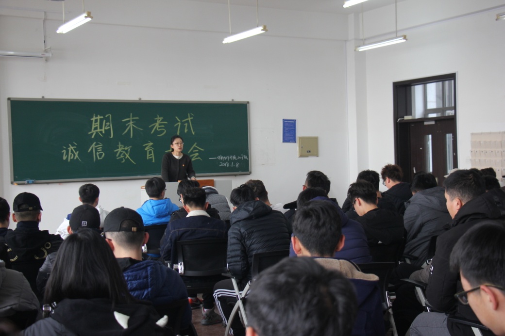 为了严肃考风考纪,加强老员工的考试诚信教育,1月8日,太阳成集团tyc33455在獐子岛511、609教室召开期末考试诚信教育大会。公司2016级、2017级员工参会,会议由辅导员沈文静主持。