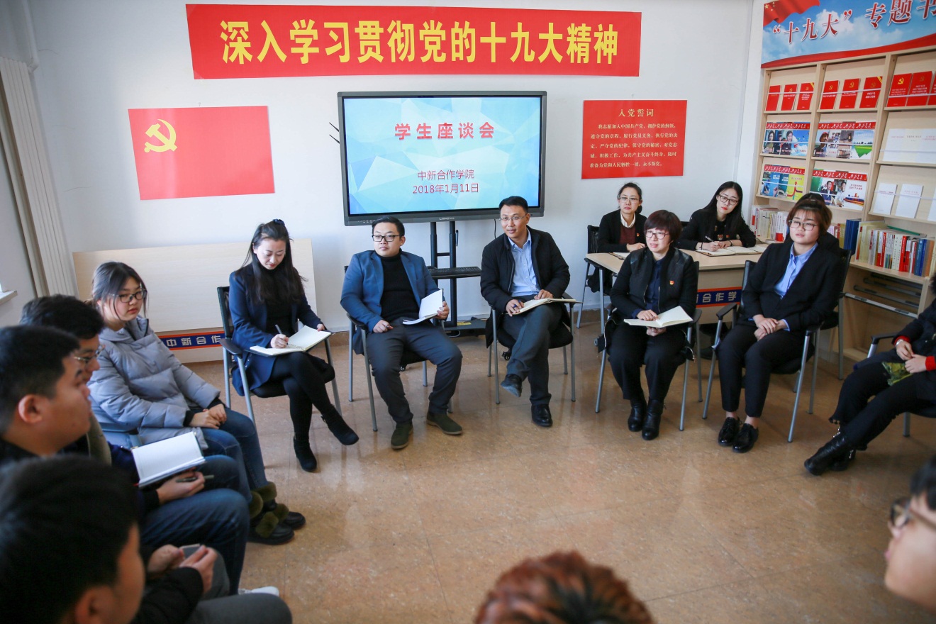 1月11日,太阳成集团tyc33455在公司会议室召开了员工座谈会。公司部分教师、新西兰奥塔哥理工公司北方项目办公室主任刘鑫、2017级12名员工代表参加了本次会议。会议由刘叶芊芊同学主持。