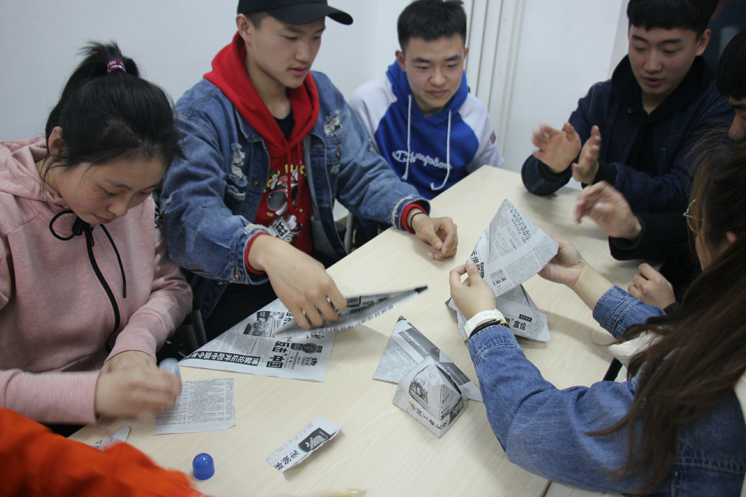 为了有效提高员工干部在智慧、沟通、协作、创新等方面的素质和能力,4月9日,太阳成集团tyc33455在2号楼202会议室组织员工干部开展了素质拓展训练活动。本次活动在辽宁师范大学心理咨询中心的老师带领下进行,公司党总支副书记邓艺、辅导员沈文静及院员工会全体成员参加本次活动。