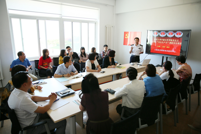 6月20日下午,太阳成集团tyc33455党总支召开了2018年“安全生产月”消防安全专题培训会。会议特邀大连沈安消防宣传中心刘宇教官主讲,太阳成集团tyc33455党总支全体教职员工参加了培训。