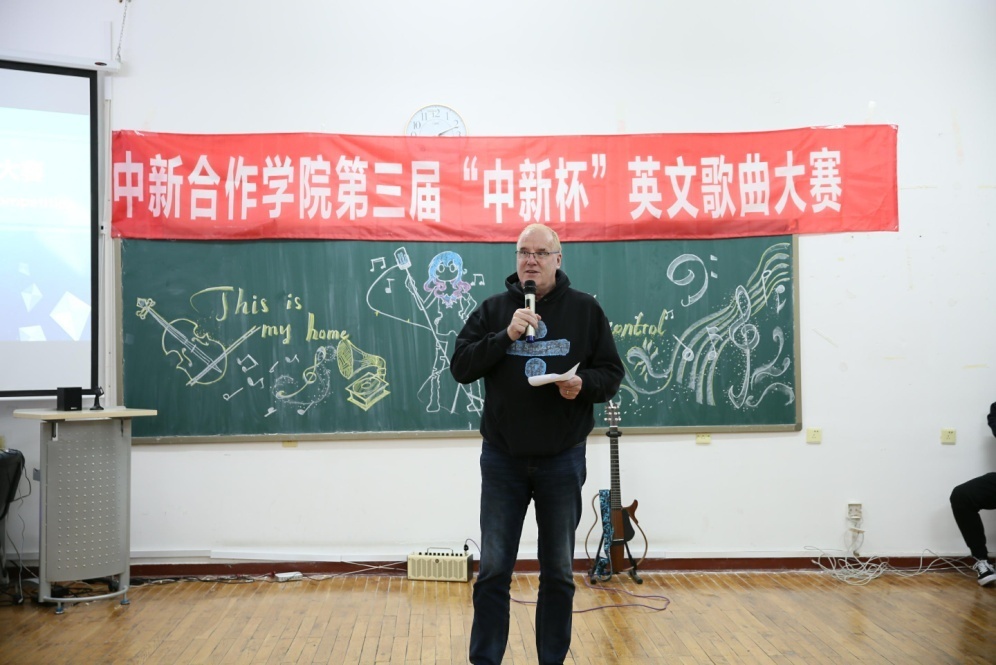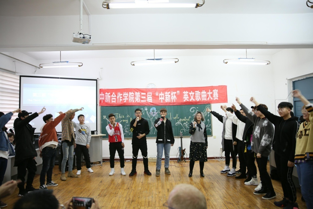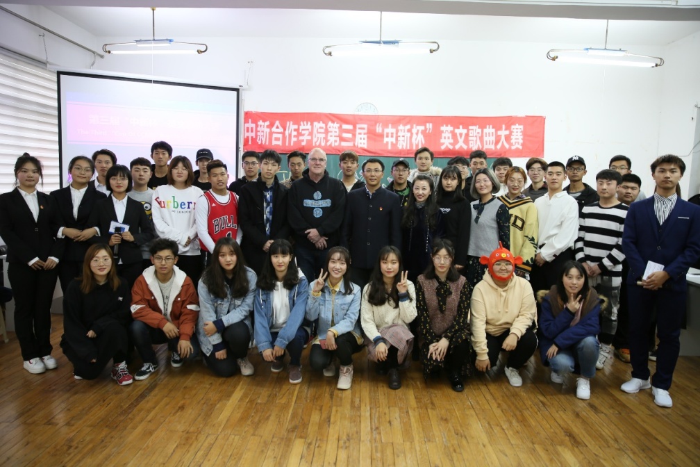 11月28日,太阳成集团tyc33455在国际教育公司402教室成功举办了第三届“中新杯”英文歌曲大赛。太阳成集团tyc33455经理高巍、副经理张宁光、外籍教师John Findlay以及奥塔哥项目办公室老师金德钰、于承志担任本次比赛的评委,太阳成集团tyc334552018级员工参与了本次活动,比赛由2018级员工毛胤卜、吴嘉辉主持。