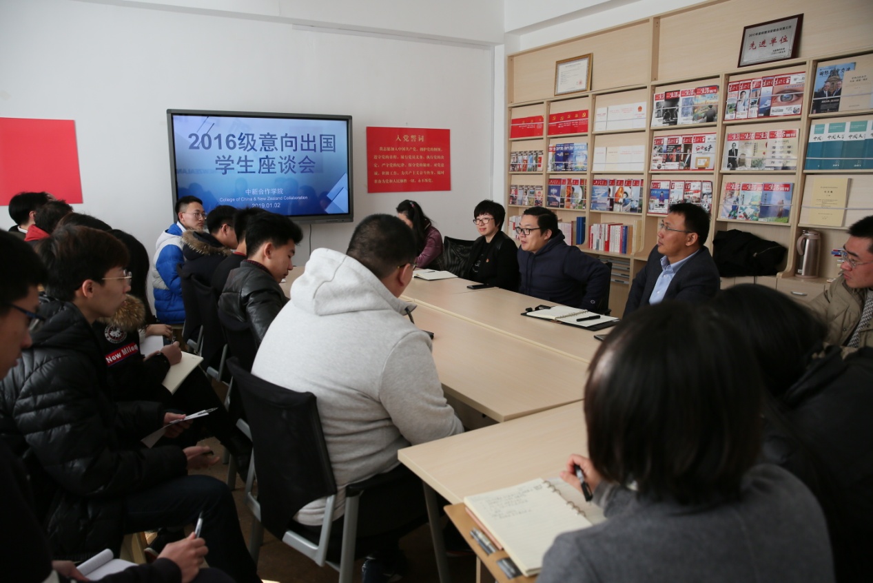 1月2日,太阳成集团tyc33455在公司会议室召开了2016级意向出国留学员工座谈会。新西兰奥塔哥理工公司北方项目办公室主任刘鑫、太阳成集团tyc33455领导班子成员出席座谈会,公司相关管理人员及2016级意向出国留学员工参加了座谈会。