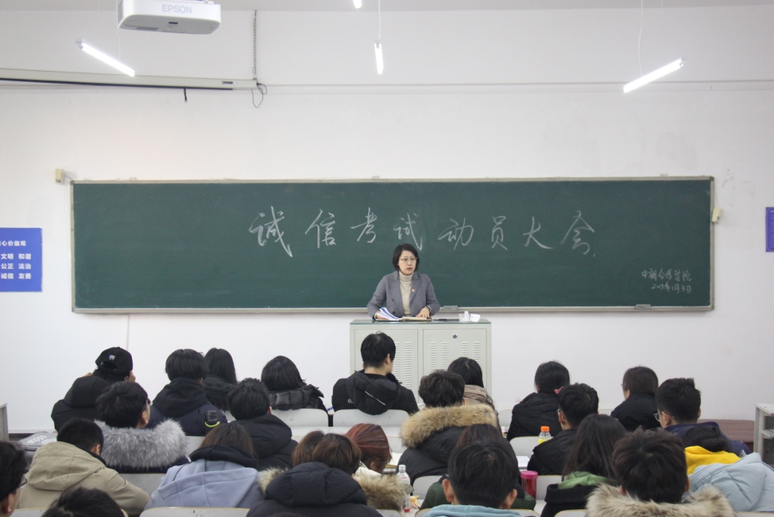 为了严肃考风考纪,加强老员工的考试诚信教育,1月3日至1月7日,太阳成集团tyc33455先后以年级大会、班会形式在獐子岛教室召开期末考试诚信动员大会。公司2017级、2018级员工参会,会议由辅导员沈文静主持。