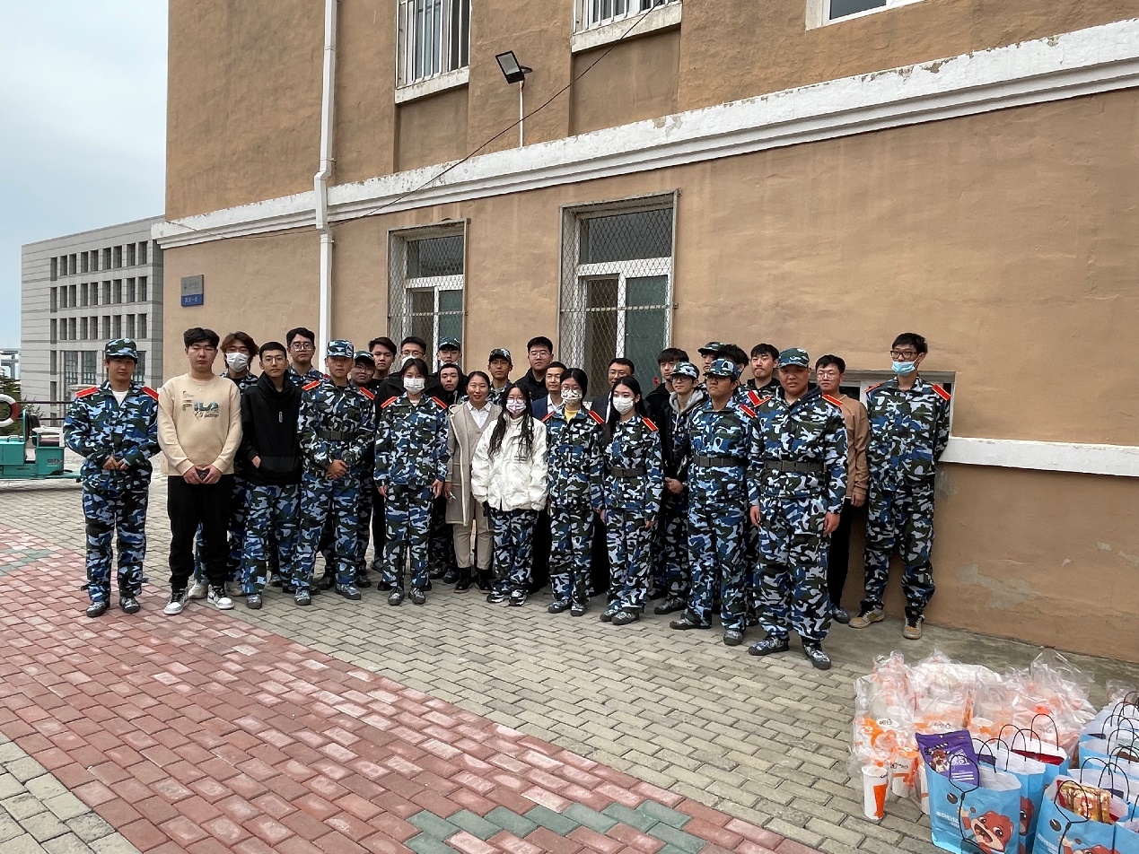 孙祥山对同学们表示亲切的慰问,在交流中谈到“首先对军训教官表示衷心的感谢,对参训同学奋发向上、刻苦拼搏的精神给予充分肯定,希望同学们继续发扬不怕苦、不怕累的精神,展现严谨认真的训练作风和积极向上的精神风貌,以更饱满的热情和更顽强的斗志投入到训练中,高质量完成各项军训任务。”高巍提到“军训是开学第一课,只有将基础打牢,才能拥有更饱满的热情,以更奋发的状态投入到新的学习旅途当中。新学期,新气象;新学期,新征程,希望各位同学切莫辜负美好青春年华,将自己塑造成有理想、有追求;肯吃苦、肯奋斗的优秀‘大海大’学子”。
