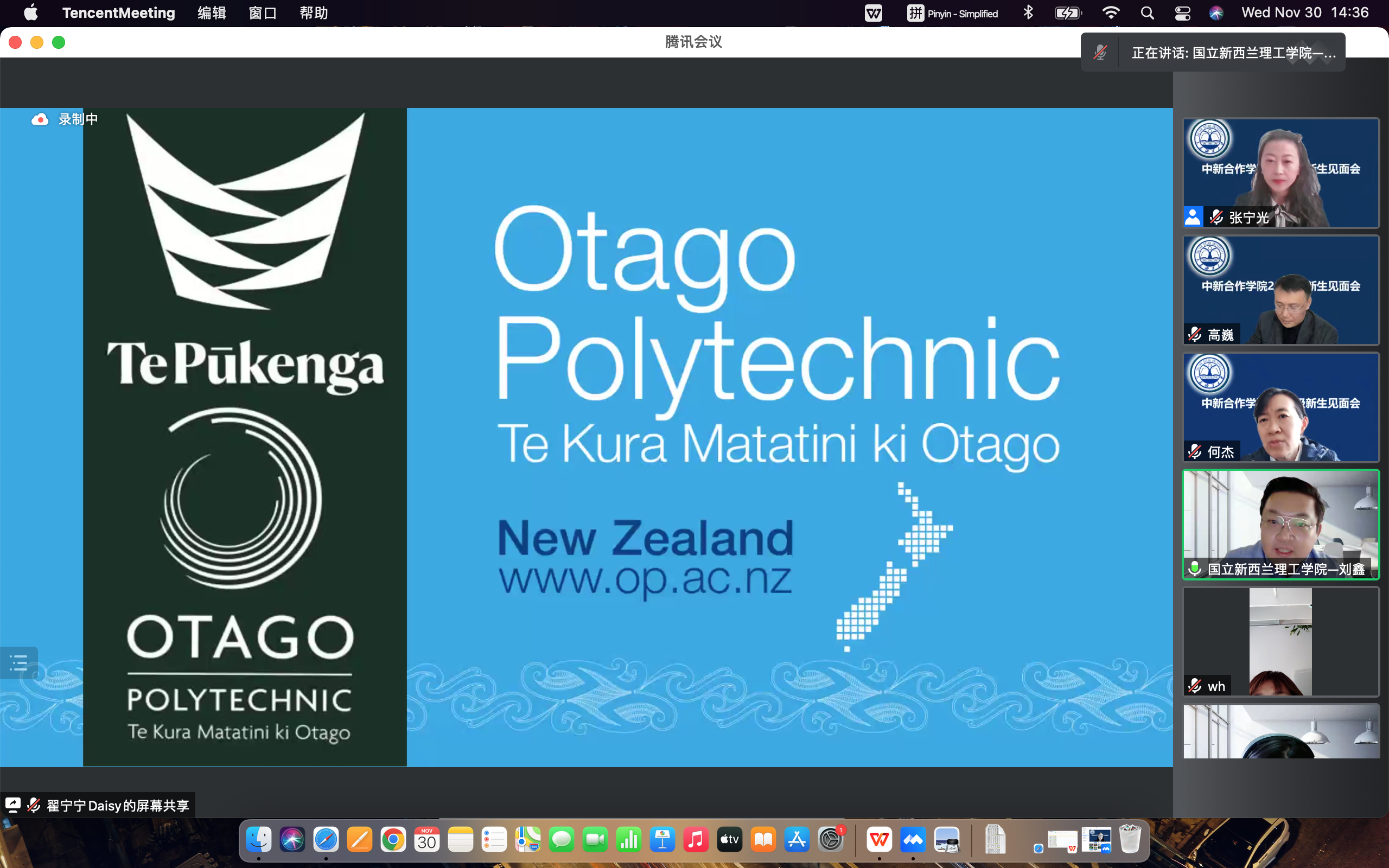 随后,刘鑫播放了新西兰国立理工公司奥塔哥理工公司分校经理Megan Gibbions教授、机械公司Mark Cartwhite经理及课程教师John Findlay的欢迎视频,以出国员工留学视频为引言,介绍了新西兰概况、新西兰国立理工公司奥塔哥理工公司分校办学情况、出国录取标准及未来发展情况。