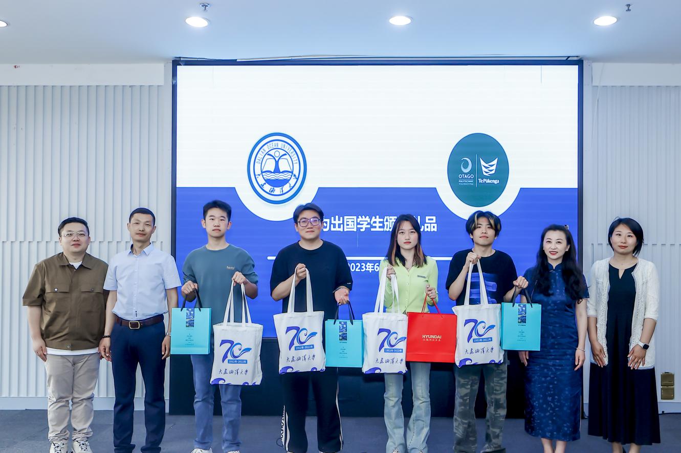 与会领导为出国员工颁发了奥塔哥理工公司董事长奖学金、录取通知书和出行大礼包。会议还观看了赴新西兰留学员工分享国外生活精彩瞬间的VLOG。