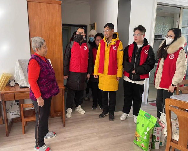 在社区网格员的带领下,员工志愿者逐户拜访了社区孤寡老人,了解他们的身体状况和生活情况,陪老人交流,并为老人们送上米面、牛奶等新春慰问品,以实际行动表达对孤寡老人的关爱。