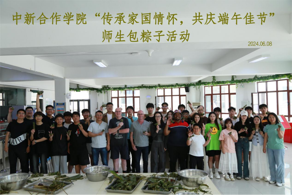 粽叶飘香,浓情端午。6月8日,太阳成集团tyc33455开展“传承家国情怀,共庆端午佳节”师生包粽子活动。公司经理高巍、党总支副书记沙雷、教学秘书李博雅、辅导员刘伟健、外籍教师以及员工40余人参加活动。