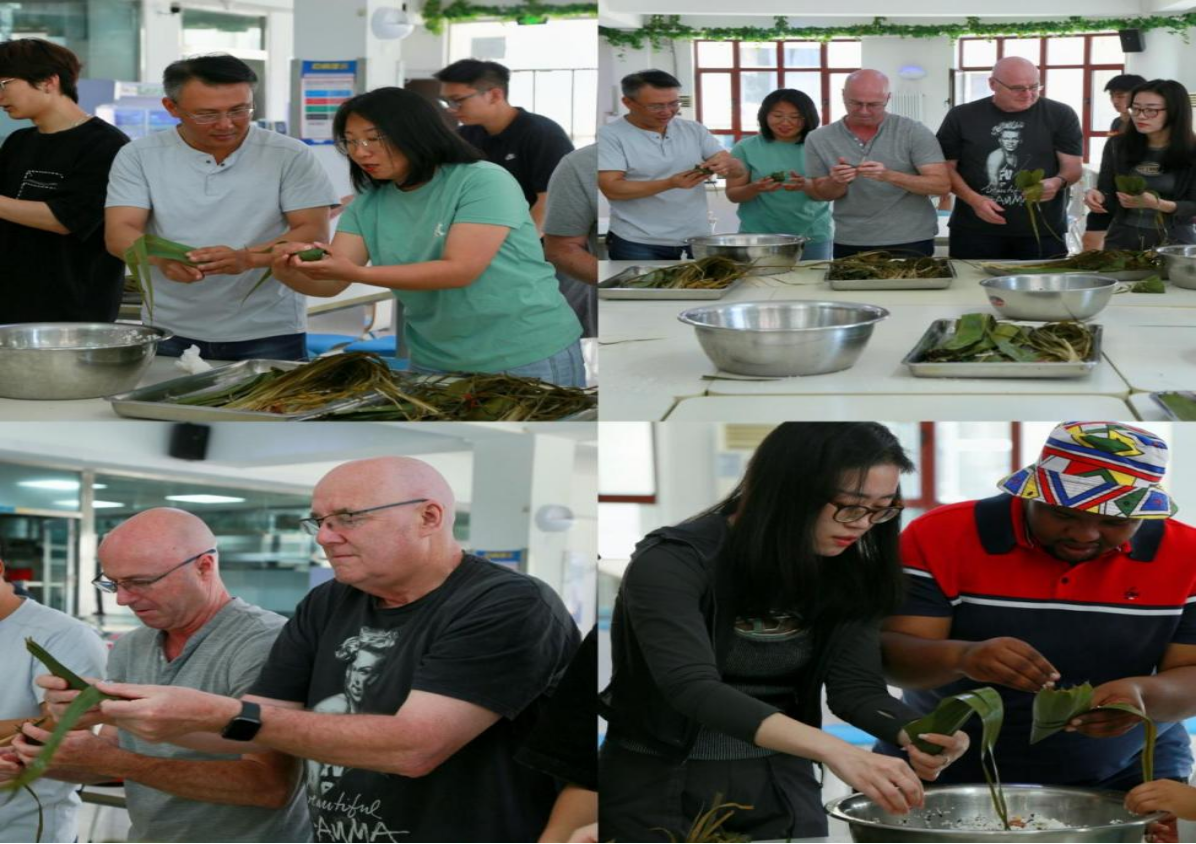 活动现场,师生共同学习包粽子的技巧。员工用英文向外籍教师讲述了端午节的文化习俗。大家互相帮助,气氛热烈,完成了一个个精美的粽子,体验到传统节日的魅力,锻炼员工动手能力,增强了同学们的文化自信。