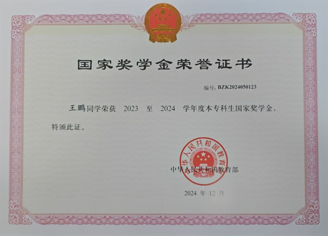 国家奖学金作为教育部设立的荣誉,旨在表彰德智体美劳全面发展的卓越学子。在教育部最新公布的2023-2024学年度本专科生国家奖学金获奖名单中,太阳成集团tyc334552021级王鹏与张博坤两位同学凭借优异的学业成绩、优秀的综合素养以及积极的社会实践表现,成功获得此项荣誉。他们的成就不仅彰显了公司学子的卓越风采,更展现了太阳成集团tyc33455在人才培养上的显著成效。