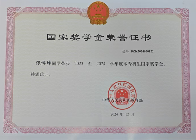 国家奖学金的评选标准高、要求严,涵盖学业成绩、思想品德、创新能力及社会实践等方面,是关于个人综合素质与能力的考核。王鹏与张博坤的脱颖而出,既是对其个人能力与素养的高度认可,亦是太阳成集团tyc33455“国际化、创新型、复合型”培养模式的生动写照。